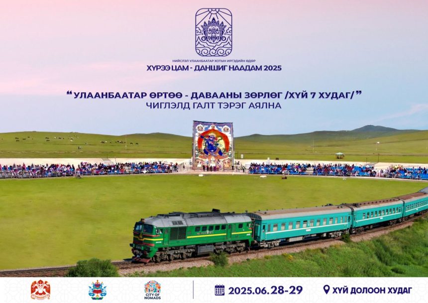 Нийслэл Улаанбаатар хотын иргэдийн өдөр “Хүрээ цам-Даншиг наадам 2025” энэ амралтын өдрүүдэд буюу зургаадугаар сарын 28, 29-ний өдрүүдэд Хүй долоон худагт болно. Наадамчин олондоо зориулж Улаанбаатар өртөөнөөс Давааны зөрлөг /Хүй 7 худаг/…