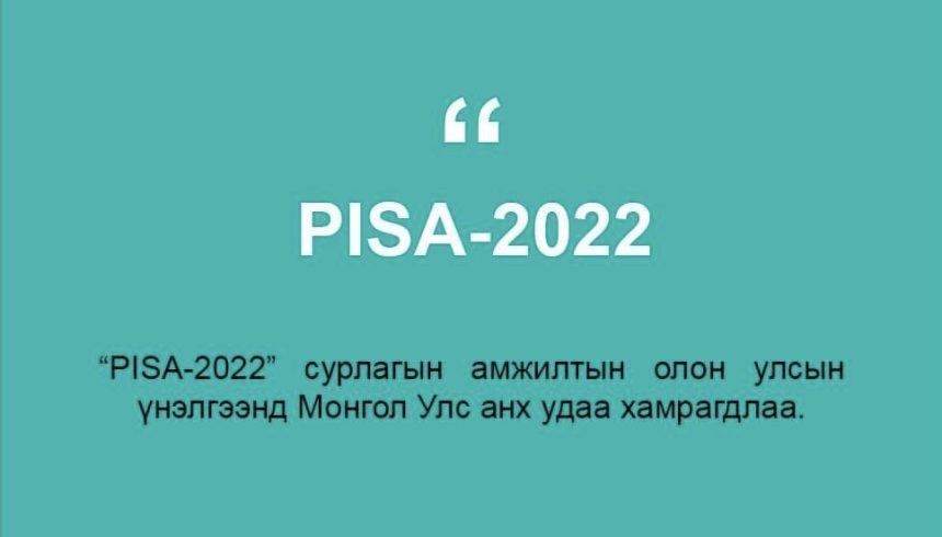 PISA нь суурь боловсрол эзэмшсэн 15 настай суралцагчид танхимаар олж авсан мэдлэг, чадвараа амьдрал дээр хэрхэн хэрэглэж байгаа, тухайн улсын боловсролын тогтолцоо энэ чадварыг ямар хэмжээнд олгож байгааг тандан судалдаг…