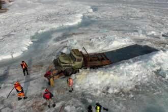 Хөвсгөл нуурт живсэн “Зил 131” автомашиныг 23 метрийн гүнээс татан гаргалаа