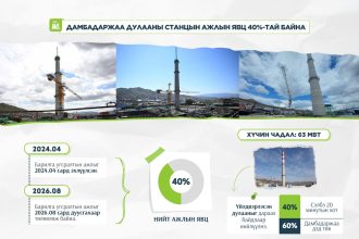 Нийслэлийн Засаг даргын Тамгын газар болон Азийн хөгжлийн банкны санхүүжилтээр 63 МВт хүчин чадалтай Дамбадаржаа дулааны станцын барилга угсралтын ажлыг…