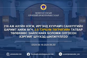 Прокурорын байгууллага 2024 оны 9 дүгээр сарын 16-наас 20-ны өдрийг хүртэл хугацаанд хэрэг бүртгэлтийн 41876, мөрдөн байцаалтын 3510 хэрэгт хяналт…