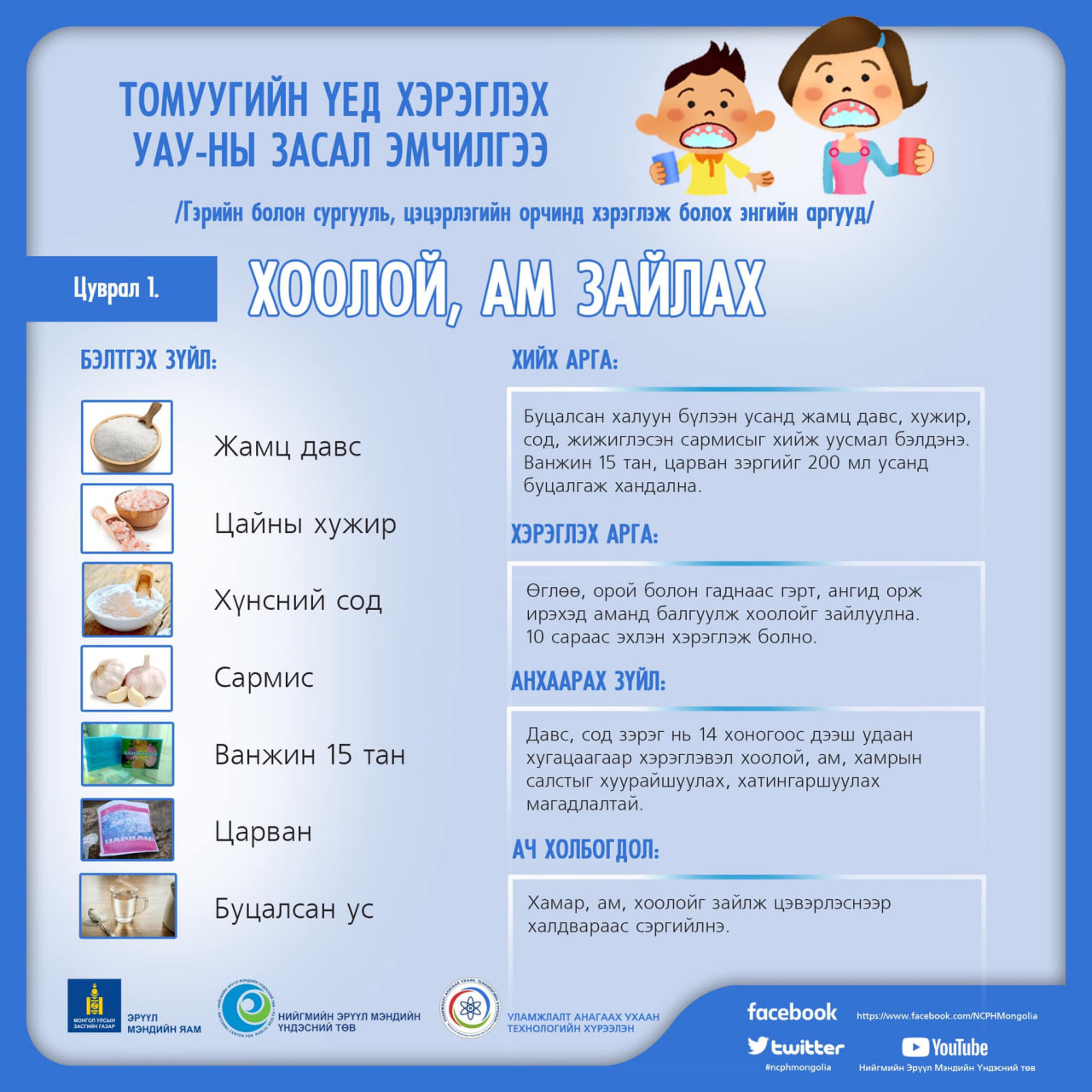 Томуу, томуу төст өвчний үед гэрийн болон сургуулийн орчинд хоолой, ам зайлах энгийн дараах аргуудыг Эрүүл Мэндийн Яамнаас гаргасан зөвлөмжийн дагуу хүргэж байна.