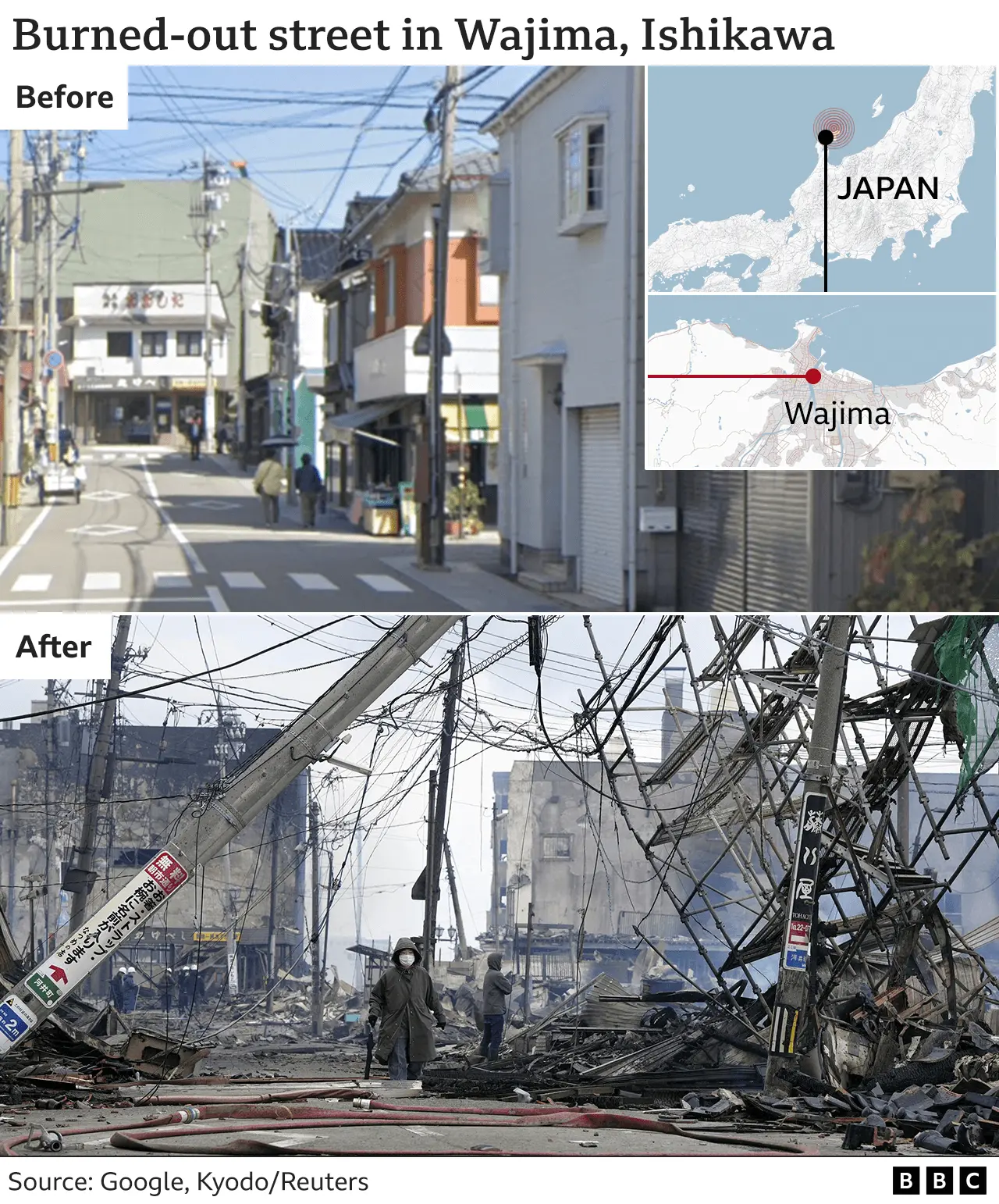 7.6 магнитудын хүчтэй газар хөдлөлтийн голомт нь Японы төв хэсэгт орших Ното хойг байв. Ерөнхий сайд Фумио Кишида хэлэхдээ, онцгой байдлын албаныхан амьд үлдсэн хүмүүсийг аврахын тулд цаг хугацаатай уралдаж байна. Мөн 3000 орчим аврагч Ното хойгийн зарим хэсэгт хүрэхээр оролдож байгаа гэж мэдэгджээ.