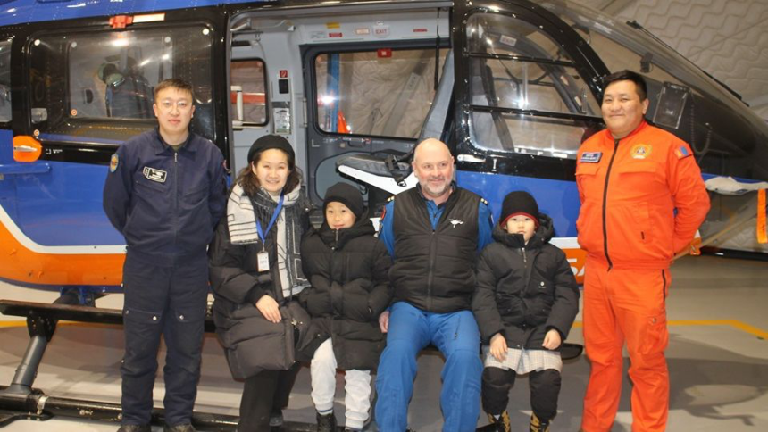 Тэрээр ээж, ахын хамтаар Агаараас эрэн хайх, аврах 111 дүгээр ангид хүрэлцэн ирж, нислэгийн экипажийн бүрэлдэхүүнд чин сэтгэлийн талархлаа илэрхийлж, ангийн үйл ажиллагаатай танилцлаа.