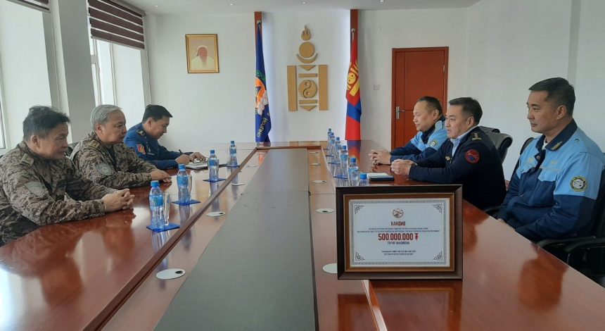 ОБЕГ-ын дарга хошууч генерал Г.Ариунбуян УБТЗ-ын хамт олонд талархсан сэтгэлээ илэрхийлээд Улсын Онцгой Комиссын талархлыг гардуулж өглөө.