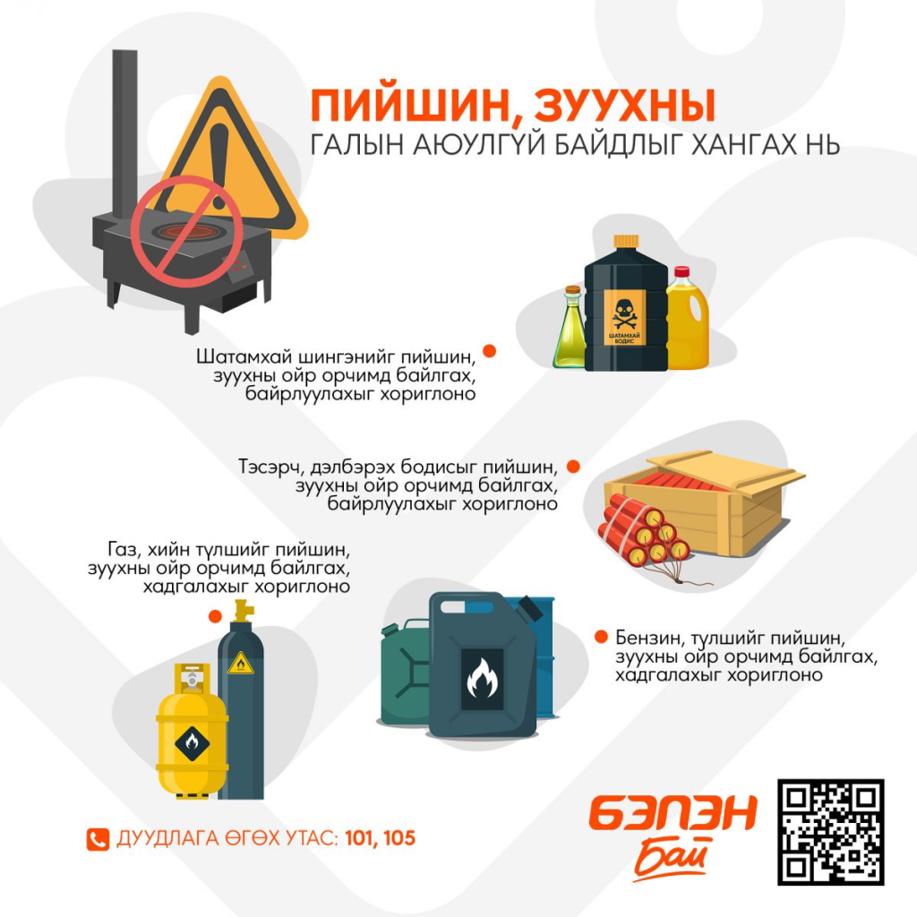 Иймд гал түймэрт өртөж эрүүл мэнд, амь нас, өмч хөрөнгөөр хохирохоос сэргийлэн, гэр орон сууцныхаа яндан, пийшин зуухны аюулгүй ажиллагааг шалгаж, засаж сэлбэх, ашиглах боломжгүй болсон яндан зуухыг солих, түлшийг хэтрүүлэхгүй байх, угаарын хий мэдрэгчийн хэвийн ажиллагааг хангахыг онцгойлон сэрэмжлүүлж байна.