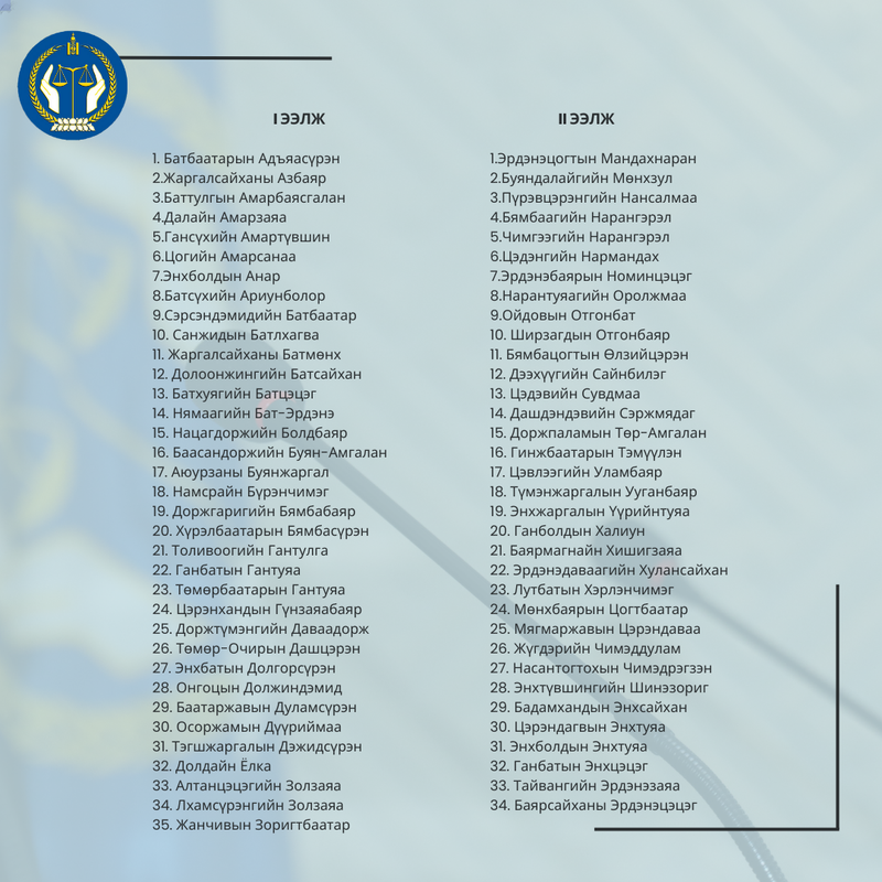 Шүүхийн ерөнхий зөвлөлөөс 2024 оны тавдугаар сарын 22-28- ны өдрүүдэд шүүгчийн сонгон шалгаруулалтыг шат дараатай зохион байгуулахаар болсон. Иргэний хэргийг харьяалан шийдвэрлэх анхан шатны шүүхийн шүүгчийн 28 сул орон тоонд 69 нэр дэвшигч бүртгүүлсэн бөгөөд дараах хоёр ээлжээр шалгалт авахаар хуваарь гаргалаа.