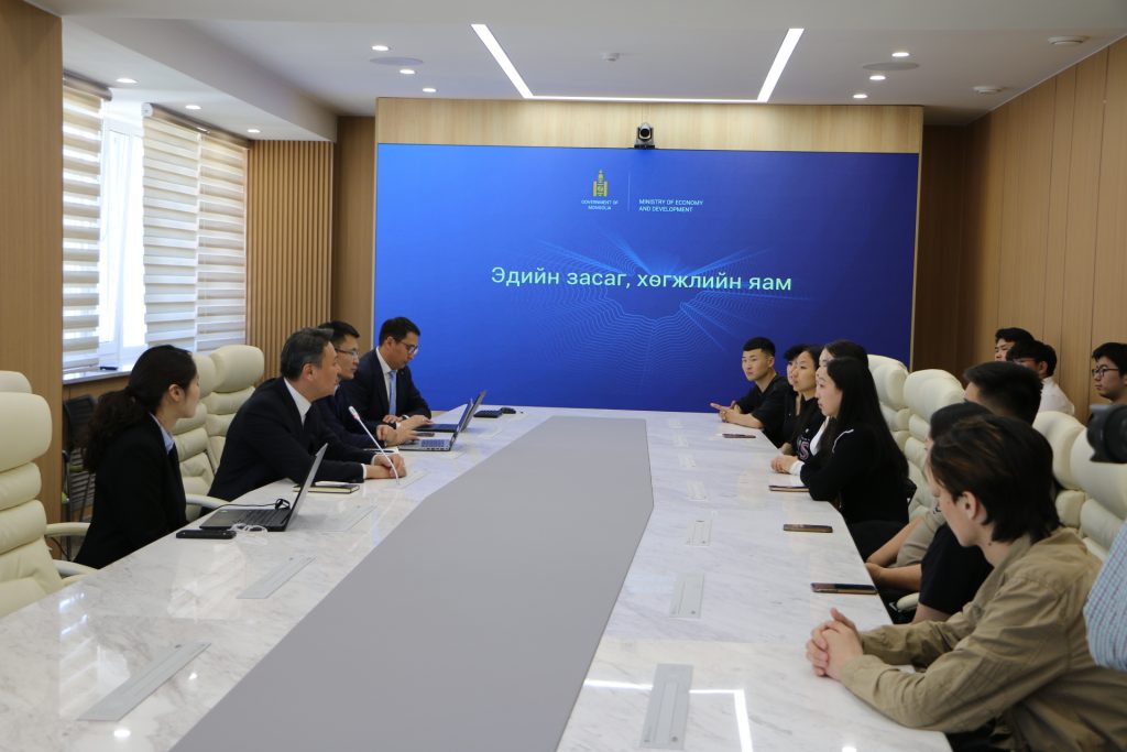 Эдийн засаг, хөгжлийн Дэд сайд Г.Түвдэндорж ШУТИС-ын Эрчим хүчний сургуулийн сэргээгдэх эрчим хүчний чигэлэлээр суралцаж буй доктор Х.Сарангэрэл багштай оюутан залуусыг хүлээн авч уулзлаа.