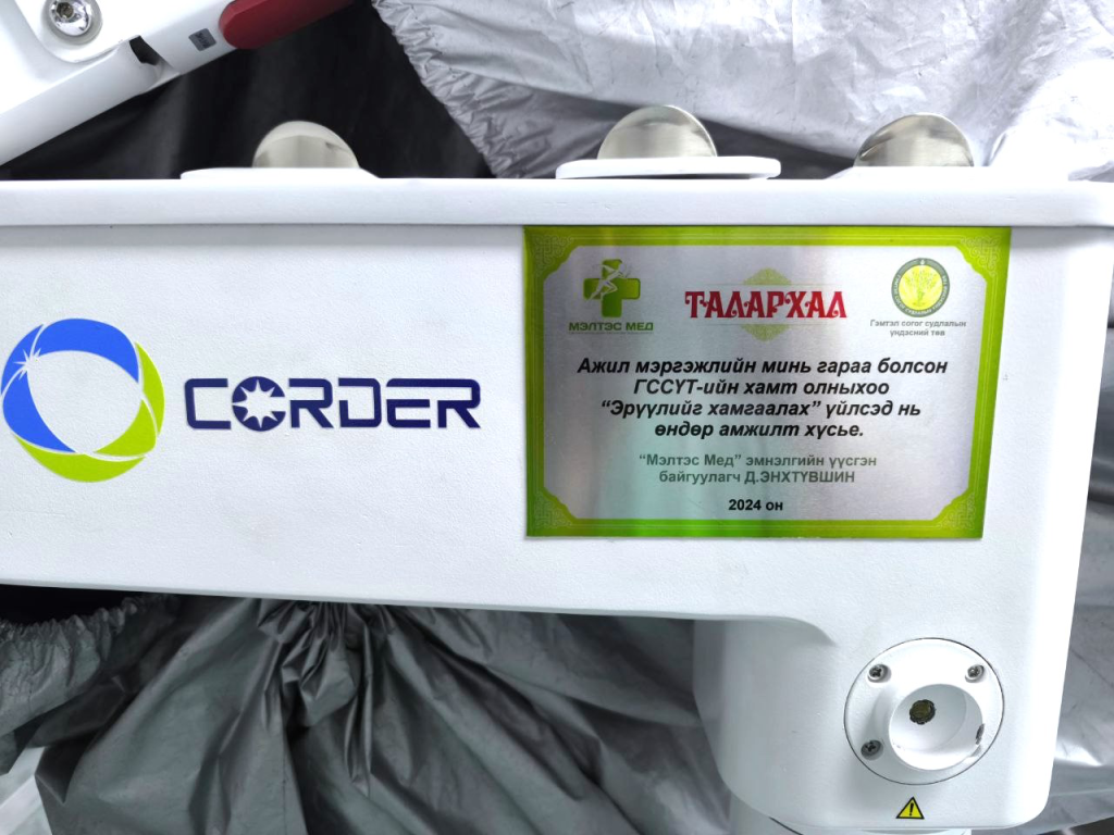 “Мэлтэс Мед” эмнэлгийн үүсгэн байгуулагч, гэмтэл согогийн мэс засалч их эмч Д.Энхтүвшин Гэмтэл согог судлалын үндэсний төвийн Гар сарвууны мэс заслын тасагт “Corder” брэндийн бичил мэс заслын микроскоп хандивлажээ.