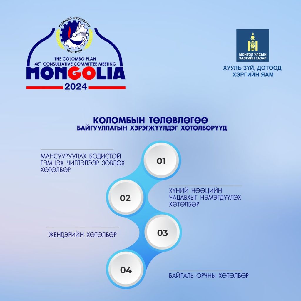 Хууль зүй, дотоод хэргийн яамнаас Коломбын төлөвлөгөө байгууллагын Зөвлөх хорооны 48 дугаар хурлыг “Мансууруулах эм, сэтгэцэд нөлөөт бодисын эсрэг хүчээ нэгтгэсэн бүс нутгийн төлөө: Урьдчилан сэргийлэх ажиллагааг эрчимжүүлэх нь” сэдвийн дор зохион байгуулах гэж байна.