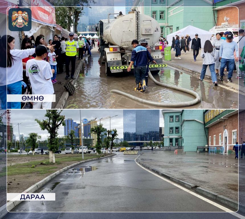 Нийслэлийн Засаг дарга бөгөөд Улаанбаатар хотын Захирагч Х.Нямбаатар гуравдугаар сарын 15-ны өдөр Төв цэнгэлдэх хүрээлэнд ажиллахдаа борооны ус ихээр тогтдог байршлуудад ус зайлуулах шугам суурилуулах үүрэг өгсөн юм. Үүний дагуу “Геодези усны барилга байгууламжийн газар” ОНӨААТҮГ-аас Төв цэнгэлдэх хүрээлэнгийн гадна зам талбайн ус ихээр тогтдог байршилд 1200 метр ус зайлуулах шугам угсарлаа. Мөн хоёр насос худаг суурилуулах ажил үргэлжилж байна. Уг ажлыг ирэх сарын 1-нд бүрэн дуусгана.