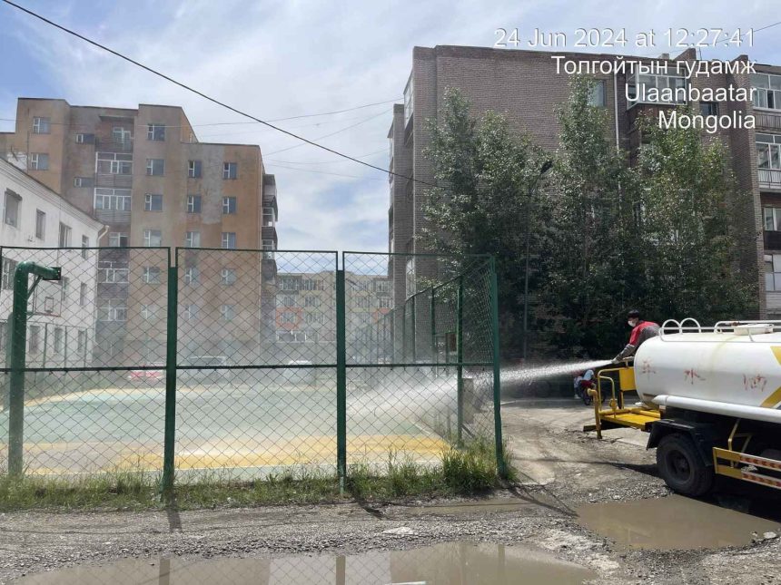 Үргэлжлэн борооны улмаас ус ихээр тогтсон орон сууцны хороолол, гэр хороолол, хүүхдийн тоглоомын талбай, үерийн далан шуудуу, иргэд ихээр зорчдог зах худалдааны төв болон хогийн цэгүүдэд халдварт өвчнөөс урьдчилан сэргийлэх зорилгоор ариутгал халдваргүйжүүлэлт хийж байна. Өчигдрийн байдлаар таван аж ахуй нэгж 7.2 сая ам метр талбайд ариутгал халдваргүйжүүлэлт хийгээд байна.
