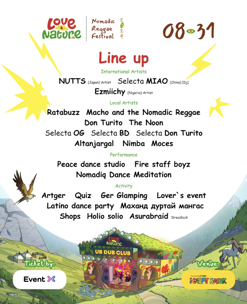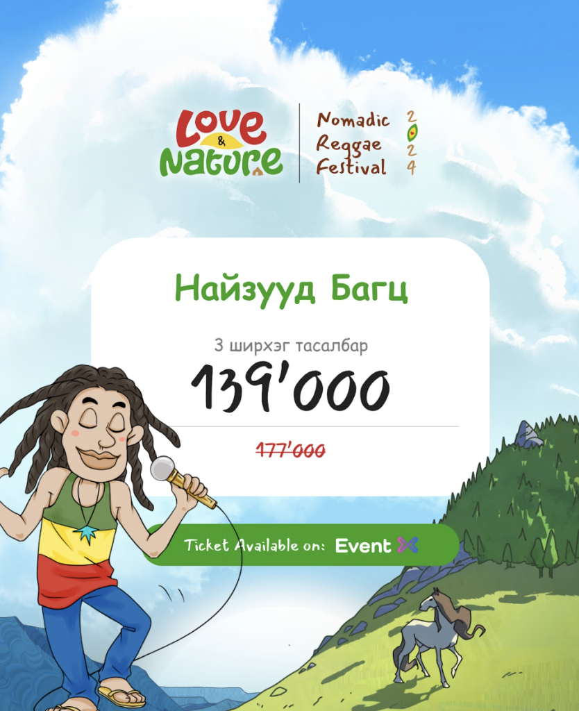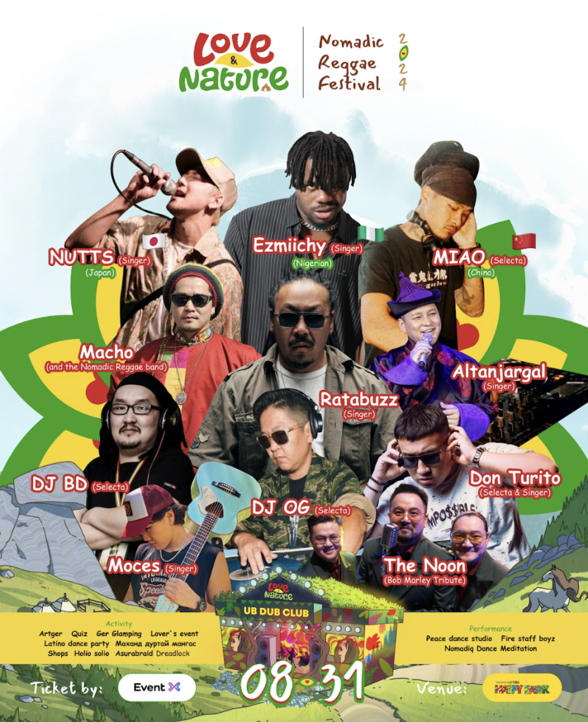 “Хайр ба Байгаль” нүүдэлчин регги фестивалийг ирэх амралтын өдөр зохион байгуулах гэж байна. Үүнтэй холбоотой UB DUB клубийн хамт олон мэдээлэл хүргэлээ. Тэд “нүүдэлчин бол Монгол гэдэг хүний хамгийн том тодорхойлолт. Нүүдэлчин хүмүүсийн сэтгэлгээ бол байгалиа хайрлах хүндлэхээс эхлэлтэй. Монголчууд уул усаа тахиж, тэнгэртээ залбирч, байгалиа шүтдэг улс. UB DUB клубийн гишүүд бид энэ бүхний үргэлжлэл юм. Бид бол хөгжимд хайртай, соёлдоо хайртай хүмүүсийн нэгдэл. Дэлхий дээр маш олон хөгжмийн төрөл байдгаас бид Регги хөгжимд хайртай болсон шалтгаан бол Jamaica үндэстэн,Монгол үндэстний хоорондын сэтгэлгээ болон соёлын адил төстэй талууд бидэнд ихээр нөлөөлсөн. Мөн үүнээс гадна бидэнд одоогийн Монголын нийгэмд хайр маш дутагдаж буй мэт санагддаг. Харин тэр хайрыг бид регги хөгжмөөс олж авсан. Гагцхүү энэ мэдэрсэн хайрыг бид нүүдэлчин соёлтой энэ улсад монголын хөгжмийн соёлтойгоо хослуулан модернизаци болгон хүргэхийг хүссэн. Регги хөгжим бол нийгмийн маш том үзэл санааны хөгжим. Бид энэ зүйлээр дамжуулан нэгнээ хайрлах хайр, байгалиа хүндлэн хайрлах хайр хоёрыг нийгэмдээ бий болгох нь энэхүү фестивалийн зорилго. Хүн, байгаль, амьтан, ургамлыг алагчлахгүй хайрлах үзэл бол монгол философийн үндсэн зүйл. Үүнийг jamaica үндэстэнд алагчлахгүй хайр = one love хэмээн үздэг” хэмээв.