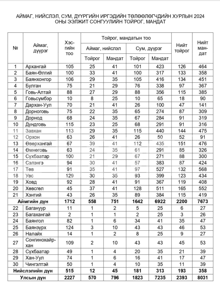 Сонгогчдоо!!! УИХ-ын сонгуулиас чухал сонгууль хаяанд тулж ирлээ. Тодруулбал бидний хэлж заншсанаар орон нутгийн сонгууль буюу Аймаг, нийслэл, сум, дүүргийн иргэдийн төлөөлөгчдийн хурлын сонгууль ирэх сарын буюу 2024 оны аравдугаар сарын 11-нд товлогдсон. Уг сонгууль шууд утгаараа эрх зүйн хүрээнд иргэн танд хамгийн ойр хүрч ажиллах, таны амьдарч буй орчныг сайжруулах бүхий л тал дээр шийдвэр гаргах төлөөлөгч хүнийг сонгох сонгууль юм. Тийм ч учраас УИХ-ын сонгуулиас ч өндөр ач холбогдол өгч оролцох ёстой сонгууль билээ. Мөн уг сонгуульд ялалт байгуулсан буюу сонгогдсон төлөөлөгчид дөрвөн жилийн хугацаагаар сонгогдох буюу 2028 хүртэл ажиллах юм.