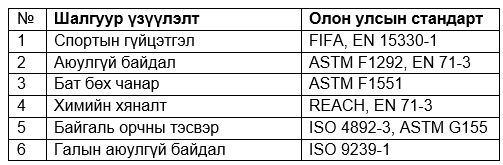 ажиглагдаж байгаа тул олон улсын стандартад нийцсэн хиймэл зүлэг ашиглах шаардлагатай байна.