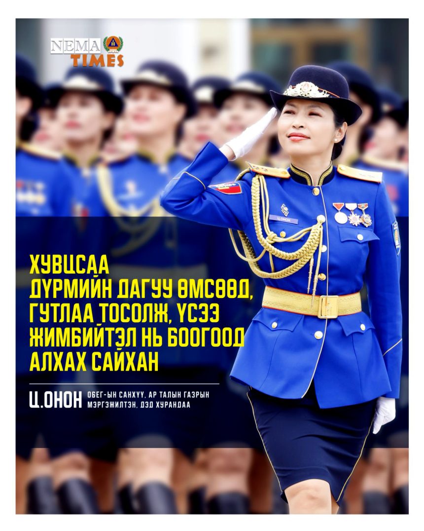Эмх цэгцтэй, өөртөө итгэлтэй, эрхэмсэг хэрнээ энгийн даруухан байдлыг Онцгой бүсгүйчүүд илтгэдэг. Чимээгүйхэн хөдөлмөрлөсөн он цагийн товчоон хийсэн ажлыг нь “ярьж”, чимэгтэй нандин дурсамжууд эзнээ тодотгон өгүүлэх нь бахдалтай. Ийм л олон бүсгүйчүүдийн төлөөлөл болох ОБЕГ-ын Санхүү, ар талын газрын даатгал болон хувцас хэрэглэл хариуцсан мэргэжилтэн, дэд хурандаа Ц.Ононг “Nematimes” булан энэ удаад онцоллоо. Монгол Улсын Ерөнхийлөгч 2025 оныг “Ахлах офицер”-ын жил болгон зарласан нь зочныг маань тодотгох бас нэгэн үндэслэл юм.
