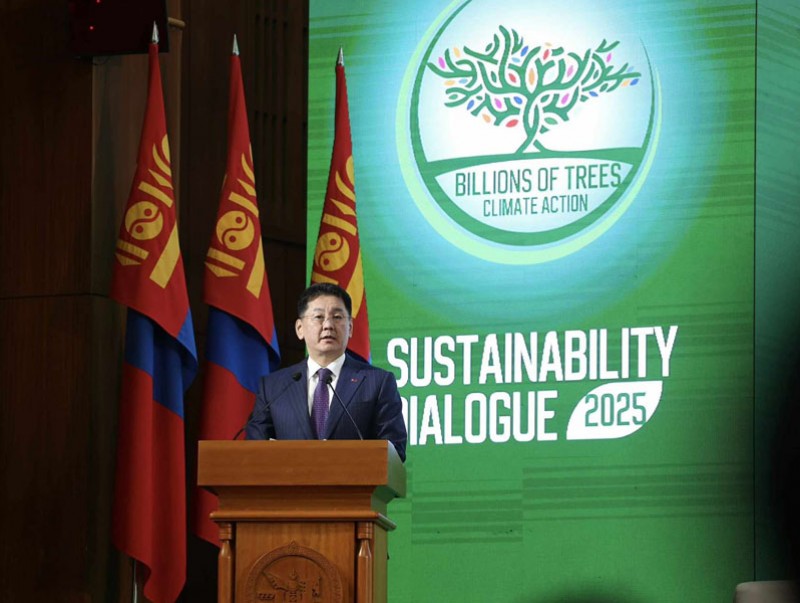 Монгол Улсын Ерөнхийлөгчийн ивээл дор “Тогтвортой байдлын яриа хэлэлцээ 2025 – Уур амьсгалын өөрчлөлт: Тэрбуман мод” чуулга уулзалт Төрийн ордонд болж байна.