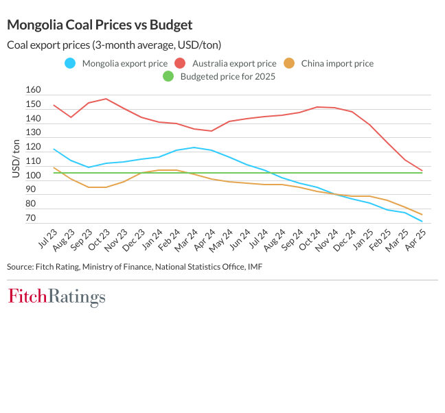 Fitch Ratings-ийн зургаадугаар сарын 9-ний тайлангаас харахад Монголын нүүрсний экспорт энэ оны эхний дөрвөн сард 39 хувиар буурсан байна. Барааны нийт экспортын орлого 13 хувиар багасжээ.