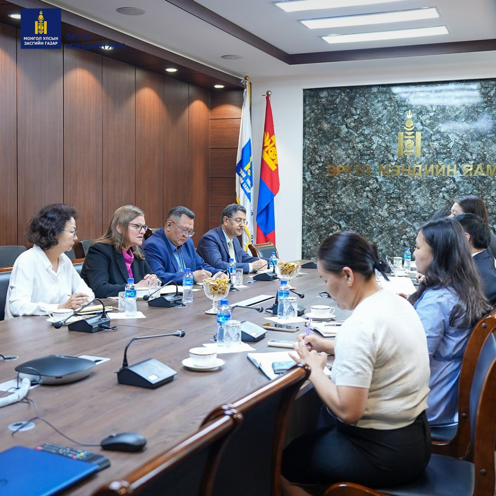 Dr. Chinburen Jigjidsuren, Member of State Great Hural (Parliament) and Minister of Health, conducted a meeting today with Ms. Shannon Cowlin, the ADB Country Director for Mongolia, along with her accompanying officials. During this meeting, Minister J.Chinburen underscored the importance of the ADB as a key development partner, noting its successful implementation of various programs and projects in collaboration with the government. These efforts have made significant strides in strengthening the primary care system, enhancing medical services, improving financial management, and developing human resource capacity within the health sector among others.