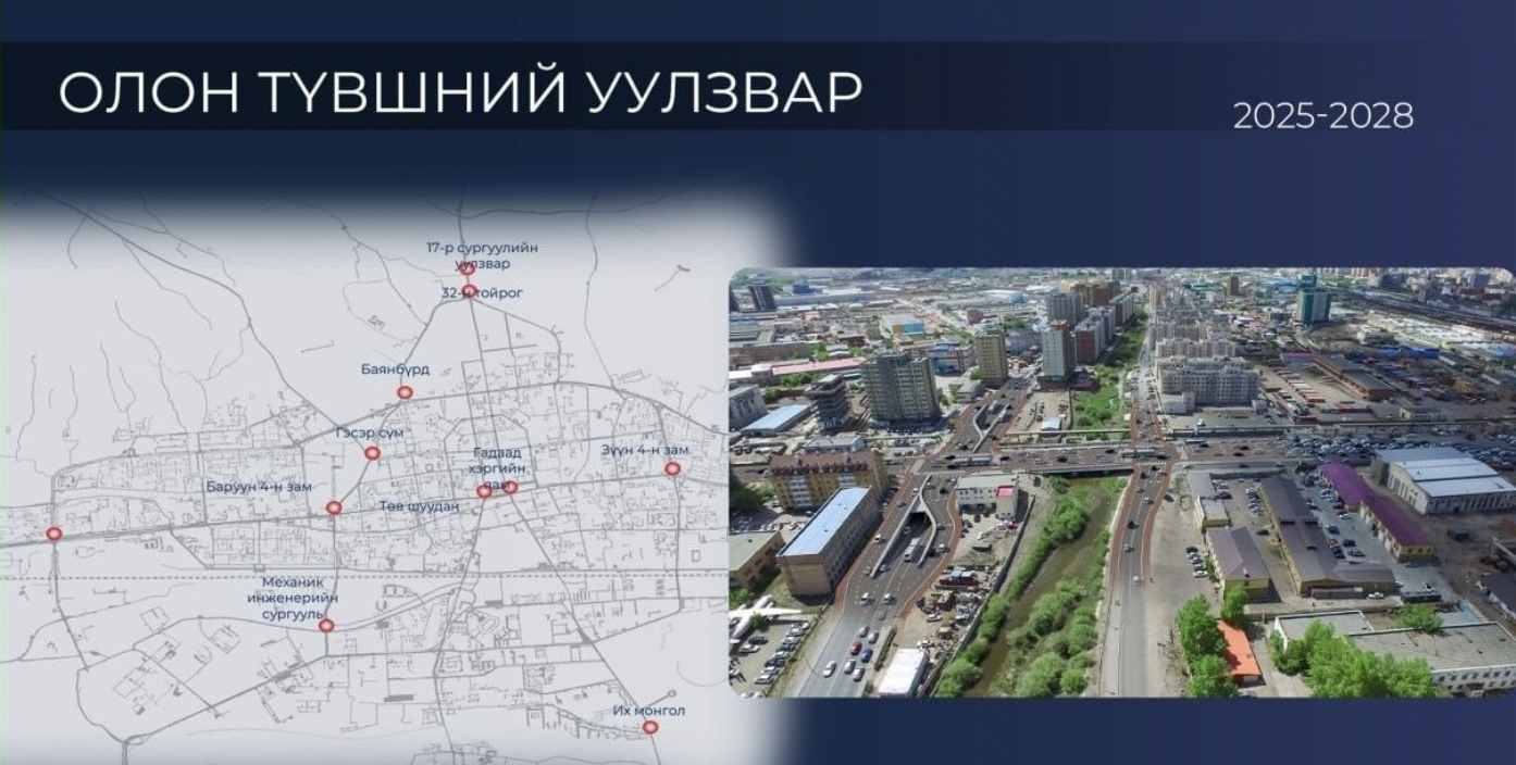 Нийслэлд орчин үеийн стандарт бүхий, аюулгүй, тасралтгүй урсгалтай авто замын сүлжээг бий болгох, хотын замын түгжрэлийг бууруулах, хөдөлгөөний үр ашгийг нэмэгдүүлэх зорилгоор “Олон түвшний уулзвар” төслийг нийт 18 байршилд үе шаттай хэрэгжүүлнэ. Энэхүү уулзварууд нь Баруун 4 зам, Саппоро, Механик инженерийн сургууль (МИС), Төв шуудан, Гэсэр сүм, Баянбүрд, 32-ын тойрог, 17 дугаар сургуулийн уулзвар, Гадаад хэргийн яам, Зүүн 4 зам, Их Монгол зэрэг хотын хөдөлгөөний хамгийн их ачаалалтай зангилаануудыг хамрахаар төлөвлөсөн.