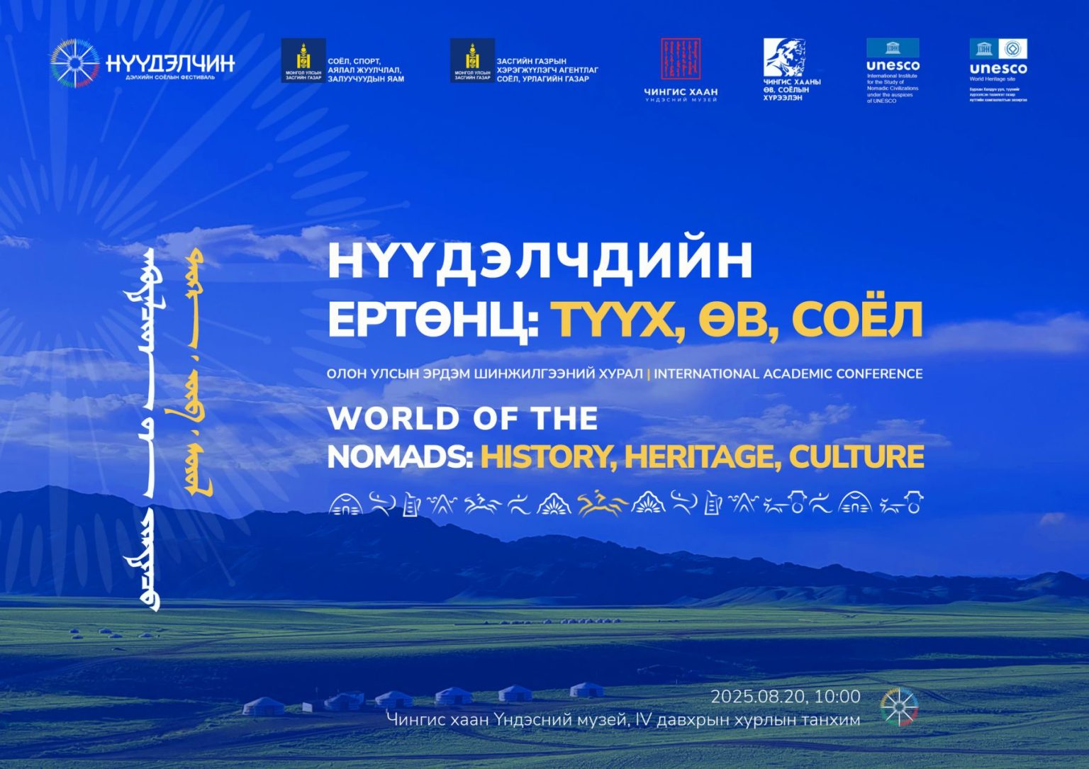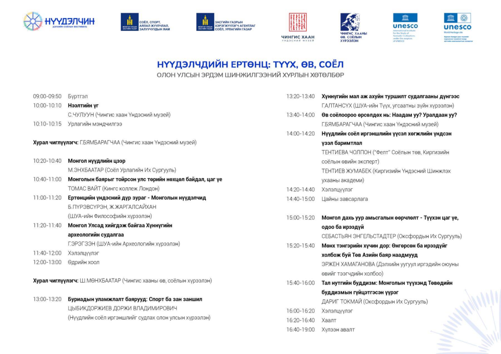 “НҮҮДЭЛЧИН” дэлхийн соёлын фестивалийн хүрээнд монголчуудын уугуул аж ахуй, нүүдэлчдийн өв, соёл, зан заншил, уламжлалыг судлах, түгээн дэлгэрүүлэх, хамгаалах, цаашид Монгол Улсыг нүүдлийн соёл иргэншлийн төв, тэргүүлэх улс болгон хөгжүүлэх зорилготой “Нүүдэлчдийн ертөнц: Түүх, өв, соёл” олон улсын эрдэм шинжилгээний хурал зохион байгуулагдана.