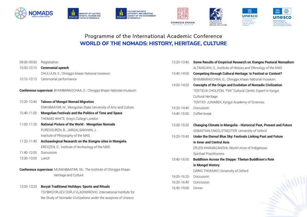 Энэхүү олон улсын эрдэм шинжилгээний хурлыг Соёл, спорт, аялал жуулчлал, залуучуудын яам, Засгийн газрын хэрэгжүүлэгч агентлаг Соёл урлагийн газар, Чингис хааны өв, соёлын хүрээлэн, Чингис хаан Үндэсний музей, Нүүдлийн соёл иргэншлийг судлах олон улсын хүрээлэн, Бурхан Халдун уулын ТХТГН-ийн хамгаалалтын захиргаа хамтран зохион байгуулж байна.