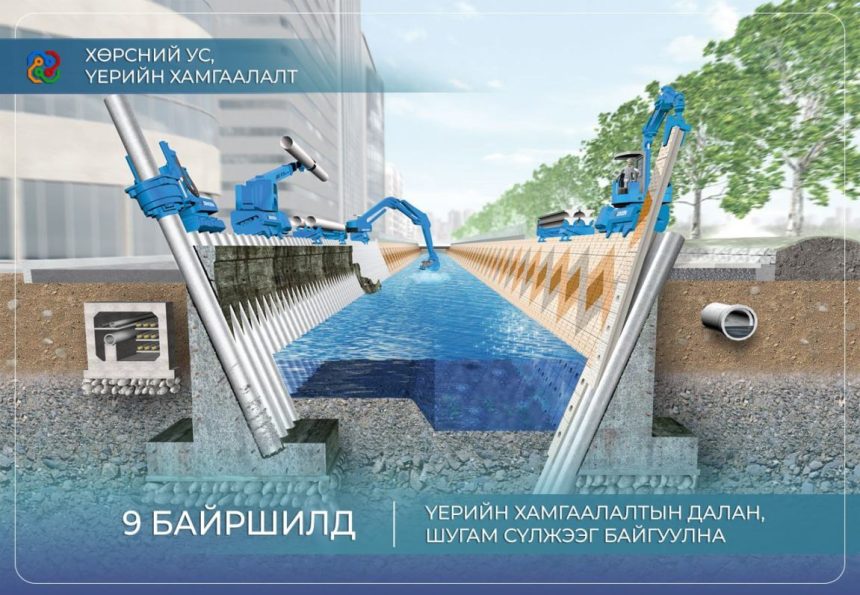 Төслийн хүрээнд үерийн хамгаалалтын барилга байгууламж болон борооны ус зайлуулах төв магистраль шугам баригдана.