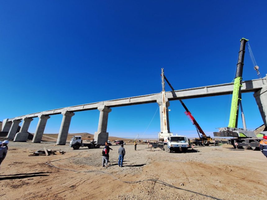Багахангай-Хөшигийн хөндий чиглэлийн салбар төмөр замын төслийн барилгын ажил амжилттай урагшилж байна. Тус төслийн ПК-68+512.500 дээр байрлах 176.7 у/м урттай төмөр бетон дам нуруут гүүрийн дам нурууг өнөөдөр буюу 2025 оны 10 дугаар сарын 08-ны өдөр амжилттай угсарч дуусгалаа.