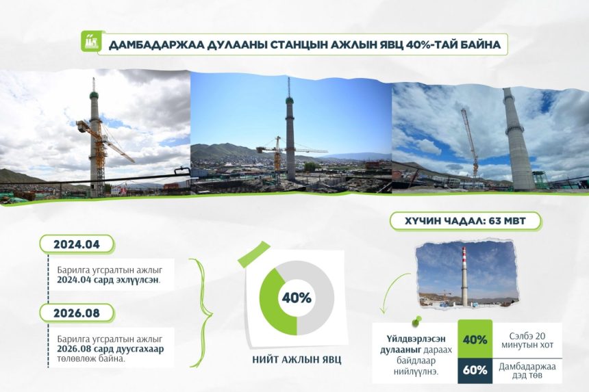 Нийслэлийн Засаг даргын Тамгын газар болон Азийн хөгжлийн банкны санхүүжилтээр 63 МВт хүчин чадалтай Дамбадаржаа дулааны станцын барилга угсралтын ажлыг 2024 оны дөрөвдүгээр сард эхлүүлсэн. Тус станцыг 2026 оны наймдугаар сард ашиглалтад оруулахаар төлөвлөн ажиллаж байна. Нийт ажлын гүйцэтгэл 40 гаруй хувьтай байгаа бөгөөд үйлдвэрлэсэн дулааны 60 хувийг Сэлбэ хот, 40 хувийг Дамбадаржаа дэд төв рүү нийлүүлнэ. Өнөөдөр Дамбадаржаа дулааны станц баригдаж буй байршилд хотын дарга Х.Нямбаатар болон холбогдох албаныхан ажиллалаа.
