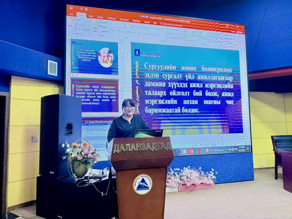 Боловсролын ерөнхий газар, Өмнөговь, Дундговь аймгийн Боловсролын газар, Насан туршийн суралцахуйн төв, АМЧБО Салбар зөвлөлүүдтэй хамтран ЕБС-ийн YIII-XII анги болон МбТБСБ-ын суралцагчдад “Ажил мэргэжлийн чиг баримжаа олгох үйл ажиллагааг зохион байгуулах арга зүй” сургалтыг 2025 оны 10 дугаар сарын 22-24-ний өдрүүдэд зохион байгуулж байна.