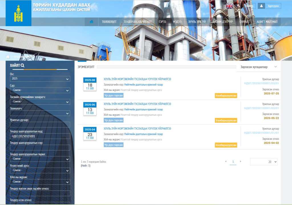Энэхүү хуулийн этгээдийг сонгон шалгаруулах тендер хууль, журмын дагуу 3 удаа зарлагдаж, эхний 2 удаагийн тендерт хуулийн этгээд шалгараагүй бөгөөд 3 дахь удаа зарласан тендерт “Дэлгэрэнгүй хууль“ төрийн бус байгууллага шалгаран 198 сая төгрөгийн гэрээ байгуулан хамтран ажиллаж байна. Тендерийн сонгон шалгаруулалттай холбоотой мэдээллийг https://user.tender.gov.mn/mn/result/detail/1746497748203 линкээр орж танилцах боломжтой.