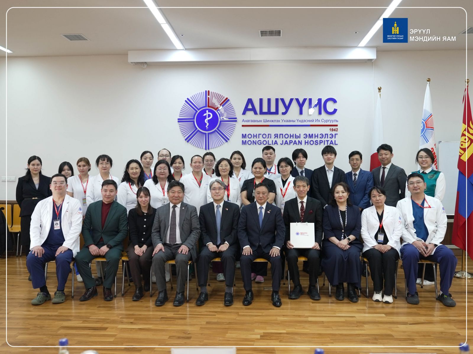 Япон Улсын Сангийн дэд сайд ноён Мимура Ацүши болон тус улсын Сангийн яамны бие бүрэлдэхүүн, Япон Улсаас Монгол Улсад суугаа Онц бөгөөд Бүрэн эрхт Элчин сайд Игавахара Масарү нар өнөөдөр (2026.02.23) АШУҮИС-ийн Монгол–Японы эмнэлэгт зочлов. Хүндэт зочдыг Эрүүл мэндийн сайд Ж.Чинбүрэн, АШУҮИС-ийн Эмнэлэг эрхэлсэн проректор Д.Цэрэндагва, Монгол–Японы эмнэлгийн захирал П.Баясгалан, эмнэлгийн удирдлагууд хүлээн авч уулзлаа.