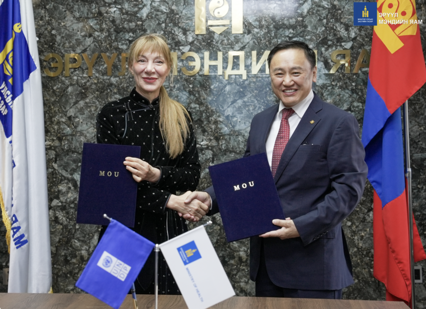 Өнөөдөр Эрүүл мэндийн сайд Ж.Чинбүрэн болон Нэгдсэн Үндэстний байгууллагын Хөгжлийн хөтөлбөрийн Суурин төлөөлөгч Матилда Димовска нар харилцан ойлголцлын санамж бичигт гарыг үсэг зурлаа.