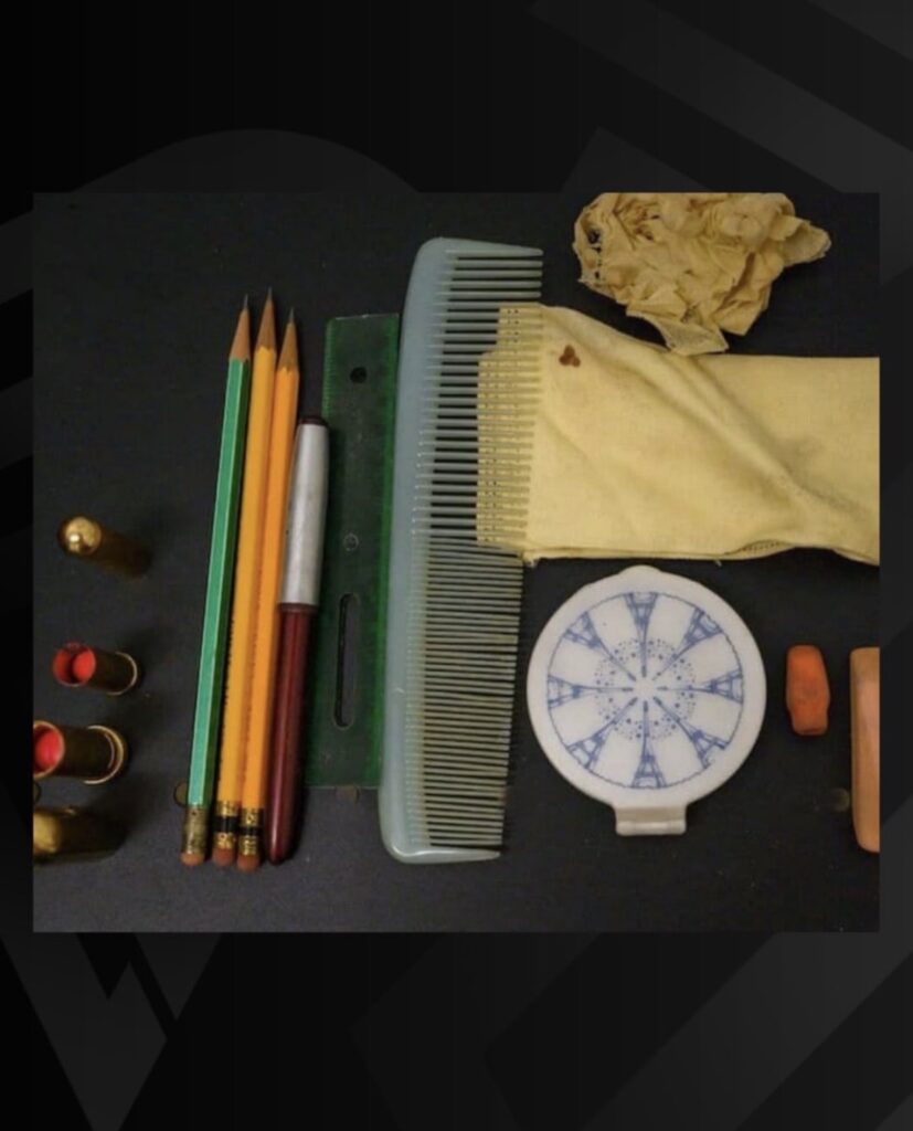 Цүнх дотор тухайн үеийн хар, цагаан зургууд, сам, гоо сайхны хэрэгсэл, 26 цент мөнгө, хөлбөмбөгийн хуваарь, бүр комикс зурсан тэмдэглэл хүртэл байжээ. Энэ бүхэн тухайн үеийн өсвөр насны охины өдөр тутмын амьдралыг яг хэвээр нь хадгалсан мэт санагдуулж байв.