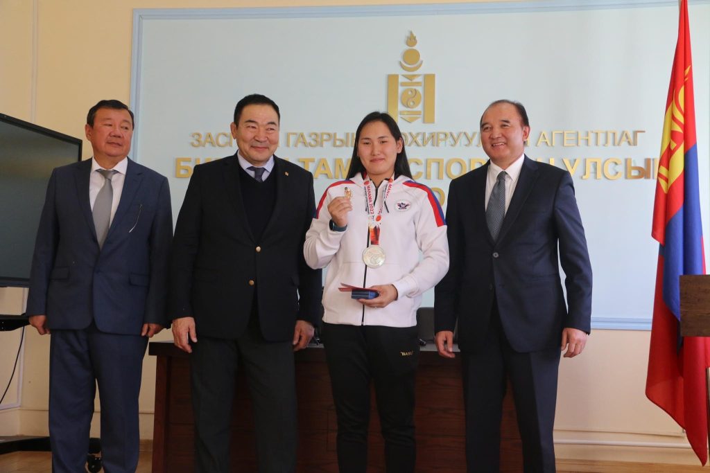 Олимп, нийтийн биеийн тамир, спортын Үндэсний хорооны дарга Б.Бат-Эрдэнэ, Биеийн тамир, спортын улсын хорооны дарга Д.Жаргалсайхан нар өчигдөр Бахрейн улсын Манама хотод болсон хүндийн өргөлтийн Ази тивийн аварга шалгаруулах тэмцээнд өндөр амжилт үзүүлсэн баг тамирчдыг хүлээн авч уулзаж, шагнал гардуулав. Биеийн тамир, спортын тэргүүний ажилтан цол тэмдгээр Ц.Хосбаяр, О.Дархижав нарыг шагналаа.