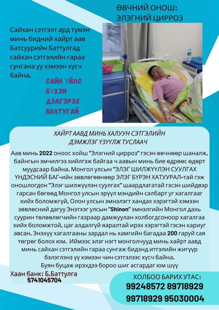Аав нь элэгний цирроз өвчнөөр шаналж байгаа нэгэн гэр бүл манай редакцид хандлаа.
