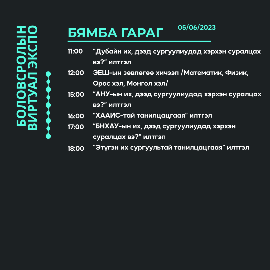 БШУЯ, GUYUK метаверс хамтран боловсролын экспог Монголдоо анх удаа виртуал орчинд зохион байгуулж байна. Уг үзэсгэлэн 2023 оны 4 дүгээр сарын 27-ноос 5 дугаар сарын 31-ны хооронд үргэлжлэх юм. Энэхүү экспод оролцсоноор ЭЕШ өгөхөд анхаарах зөвлөгөө мэдээлэл, Япон, БНСУ, АНУ, БНХАУ болон Дубайн шилдэг их, дээд сургуулиудад элсэн суралцах зөвлөгөө, мэргэжил сурталчлах илтгэл хэлэлцүүлэг сонсох, дотоодын их, дээд сургуулиудын мэдээллийг нэг дороос авах, ЭЕШ-д бэлдэх зөвлөгөө мэдээлэл болон хичээл үзэх, ивээн тэтгэгч байгууллагуудын гарын бэлгийн эзэн болох боломжтой гэнэ. Үүний тулд та гар утас, компьютер, зөөврийн нөүтбүүк, таблет зэрэг өөрийн ашигладаг төхөөрөмж дээрээ GUYUK метаверс аппликейшнийг татаж авахад хангалттай юм. Ингэснээр хүссэн газраасаа үнэ төлбөргүйгээр виртуал эвентэд хамрагдах боломжтой. Та GUYUK метаверс аппликейшнг www.guyuk.mn веб хуудаснаас татаж аваарай.