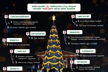 Шинэ жилийн баярыг угтан нийслэлийн есөн дүүргийн 14 байршилд сүлд мод зассан…