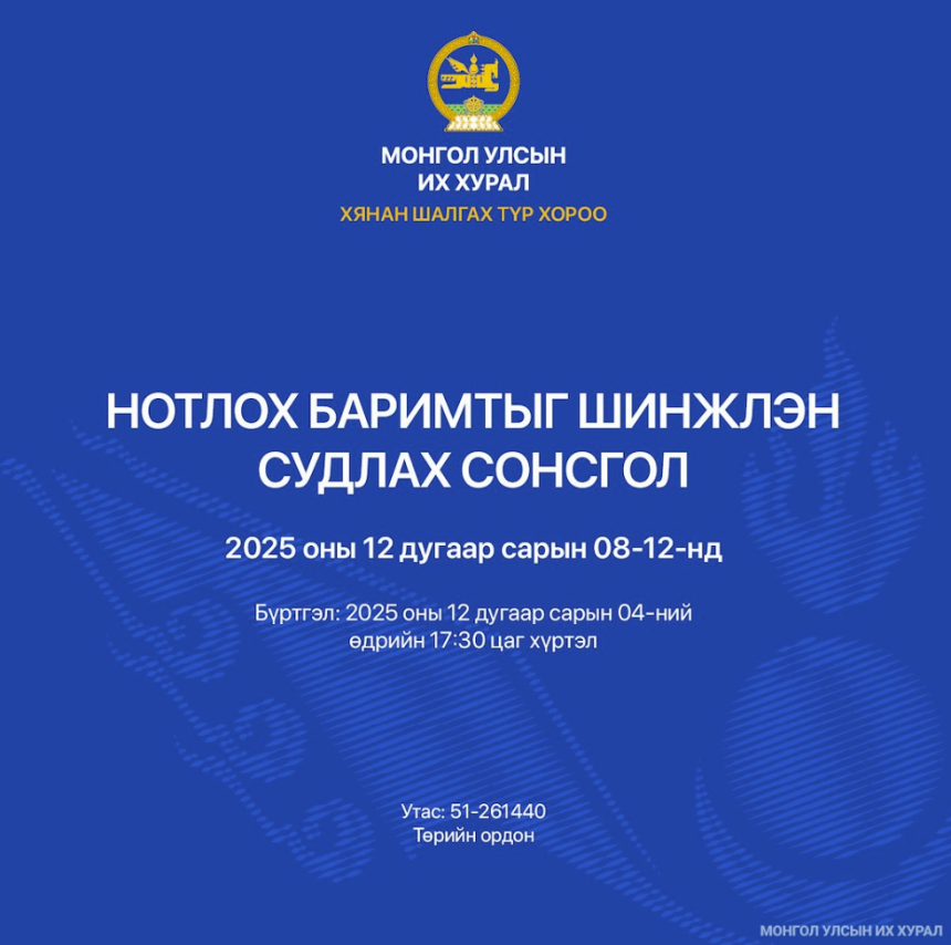 Монгол Улсын Их Хурлын 2025 оны 62 дугаар тогтоолоор байгуулагдсан “Оюу толгой бүлэг ордын ашиглалтад Монгол Улсын эрх ашгийг хангуулах, хүртэх өгөөжийг нэмэгдүүлэхтэй холбоотой баримт бичиг, үйл ажиллагаанд хяналт шалгалт…